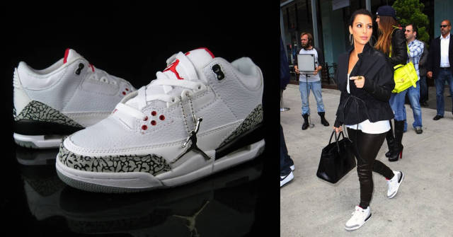 Air Jordan III Retro的White Cement,被名媛金卡戴珊小姐垂青了,撒花祝贺。