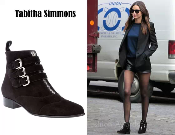 既然说到金属扣,多提几句,在短靴中一向是设计师很中意的配件,譬如Alexa Chung、Emma Watson、金荷娜还有维多利亚秘密宝贝米兰达·可儿都看上的这款Tabitha Simmons,洒脱帅气。话说太喜欢米兰达,什么时候都美到不行,怪不得精灵王子跟阿汤哥都拜倒石榴裙下。