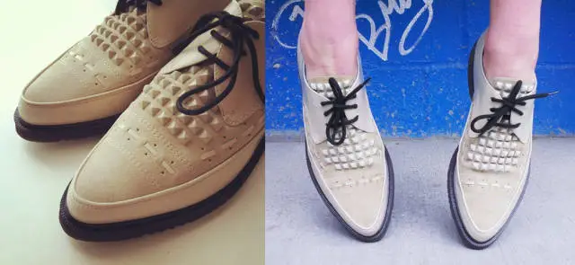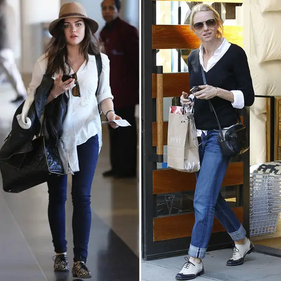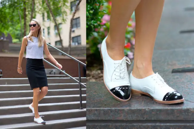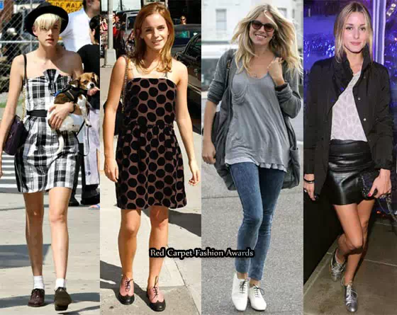如果sneakers不是你的风格,可以考虑一下学院风的Oxfords。我家小赫敏还有前阿汤嫂凯蒂都是牛津鞋粉儿。其实详纠起来的话,现在市面上不少被称为牛津鞋的款式其实是Derby德比鞋,但两者长得非常相像,区别主要在鞋舌的缝制手法上。但咱又不是卖鞋的,从搭配的角度没太大区别,所以就不区别对待了。