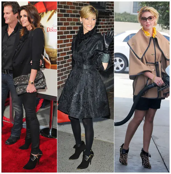 替代细跟船鞋最好的选择应该是细跟踝靴,同样都是女人味十足,譬如Christian Louboutin红底鞋的Huguette、Versus 的金色别扣款、Reese脚上的Gianvito Rossi 、贝嫂脚上的Giuseppe Zanotti和Saint Laurent以及Saint Laurent金属链款这几双黑色基本配备。