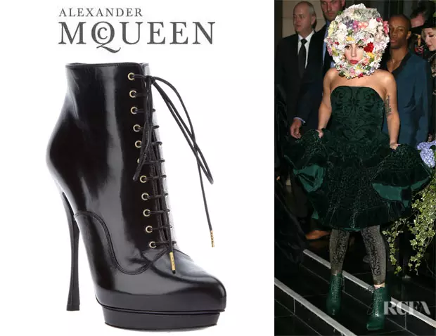Prada、Alexander McQueen、Bionda Castana、Chloe和碧昂丝脚上这双Alaïa的系带款。看到McQueen那张不用我多说大家也认出来是最剑走偏锋的Gaga同志了吧。。。