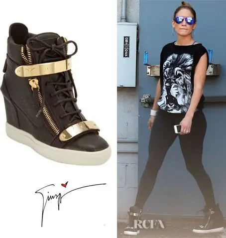 但Barbara Bui的增高相当保守,要想直接当高跟穿看看下图的名模Cara Delevingnes脚上的DKNY和天后珍妮佛·洛佩兹的Giuseppe Zanotti,就是这个意思。