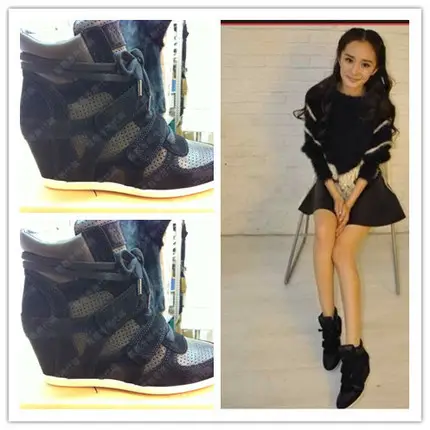 来自意大利的ASH内增高也是欧美街头最常出现的单品之一,也是女星们的心爱之物,大幂幂也不免俗网上晒从香港败的ASH。