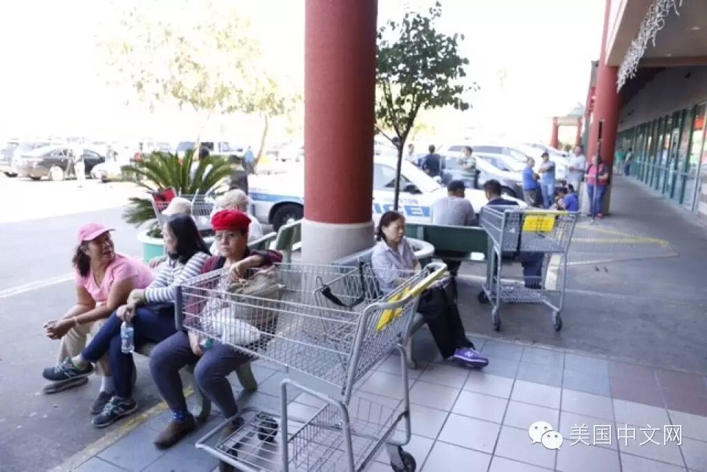 美国中文网综合报道:美国第四大城市休斯敦的中国城5日发生致命枪击事件。一名亚裔员工在香港超级市场内与上司争吵后,开枪将后者射杀,随后饮弹身亡。上图为等在超市外的华裔居民