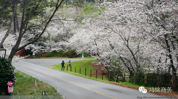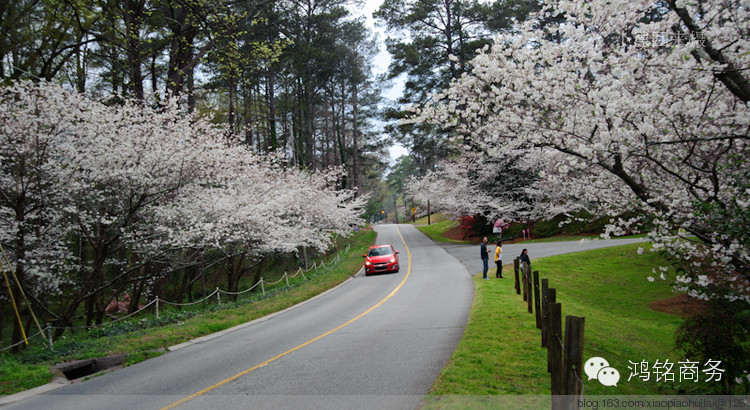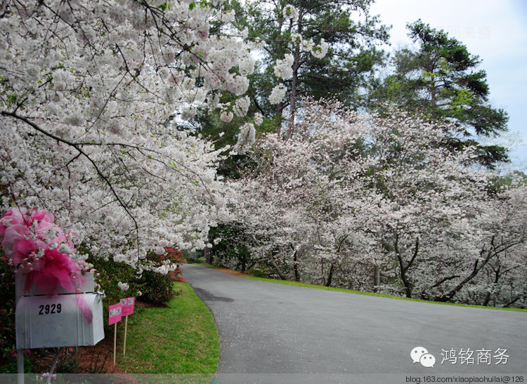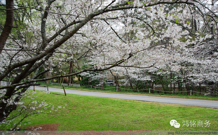 在美国有两个著名的赏樱花的地方,北方华盛顿,南方梅肯(Macon),每年都会举办国际樱花节。华盛顿的樱花主要集中在潮汐湖沿岸,共计3000余棵,樱花以及林肯纪念馆、尖塔式的纪念碑在湖水映衬下,虚实相映,历史、人文以及自然融为一体,的确具有不同凡响的美!而南方乔治亚州梅肯(Macon)的樱花则大不一样,号称30万株,规模可谓空前,而且樱花满布全城,学校、街道、居住区,哪里都有,难怪被誉为世界樱花之都(Cherry Blossom Capital of the World), 可以想象,樱花开放之时,满城如云似雾,老百姓的生活就在这样的大背景下展开,的确浪漫无比。