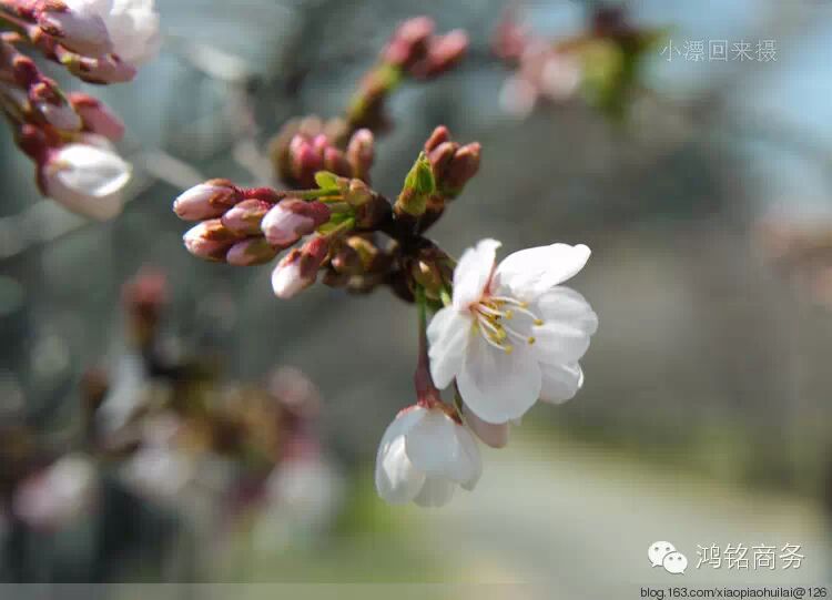 走进校园,果然路两边以樱花树作为行道树,但是很多花花正是含苞未放,未免遗憾--还是心太急了一点。虽然如此,毕竟大约已有30%已经开放,那就开始赏樱吧。