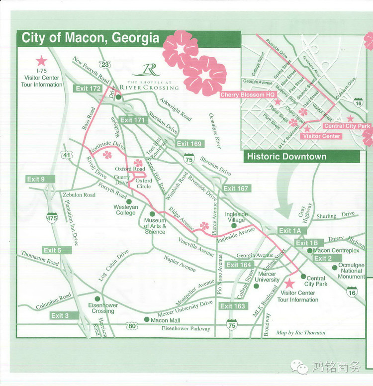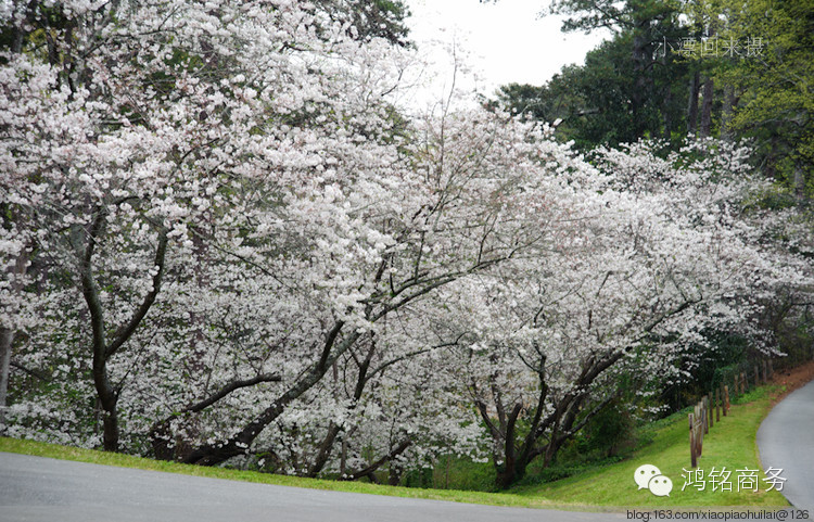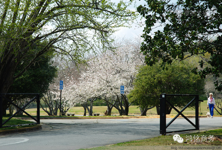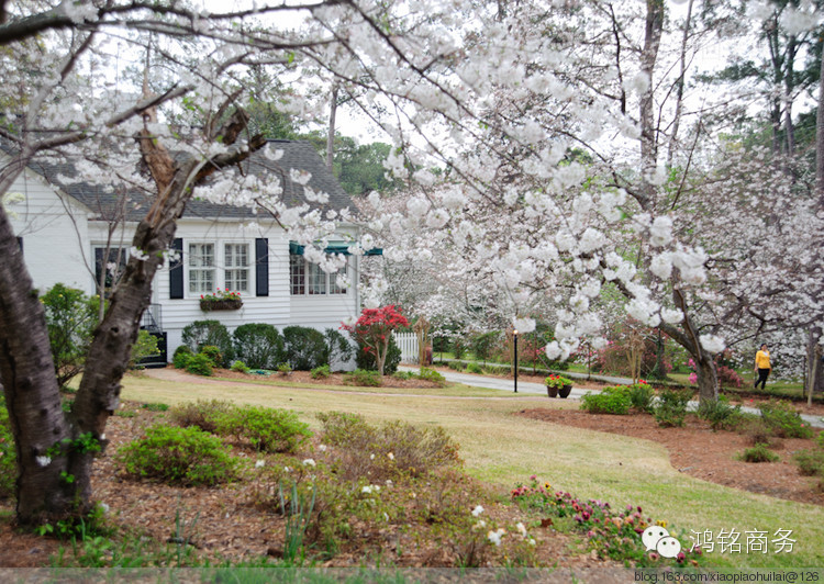 说起Macon的樱花,不得不说说它的历史,1949年时,在Macon有一个做房地产生意的人,名叫William A. Fickling,他酷爱花花草草,一天他在后花园里散步,被一株正在开花的很漂亮的树吸引了,以前从来没见过,请教了很多人包括园林工人,但没人知道这是什么植物?1952年时,Fickling先生因商务去华盛顿特区旅行,他看见了潮汐湖边的樱花,他意识到原来他后花园里那株奇异的树就是日本早樱,在他回到Macon以后,开始繁殖樱花树,并免费送给当地的居民。