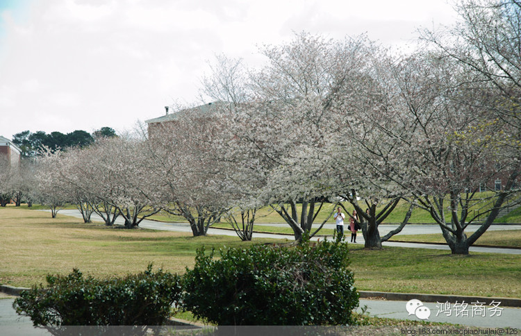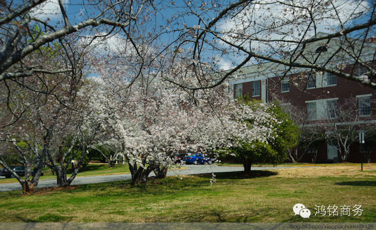 话没说完,但我们的车已经开到了梅肯,但见路两边樱花树较多,但遗憾的是很多仅仅初开,一点也不繁茂。我们继续向 Wesleyan College--就是宋氏三姐妹曾经上过的那个大学前进,那里樱花树很多。