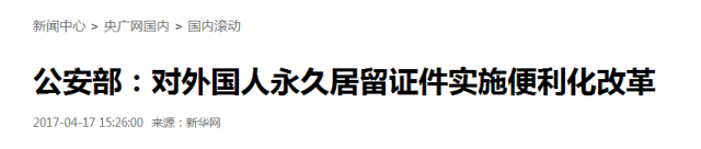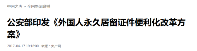 不过,就在近日,中国公安部发消息称:对外国人永久居留证件实施便利化改革!