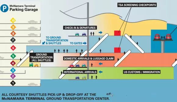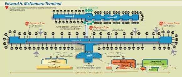 Delta与其SkyTeam Alliance则使用麦克纳马拉航厦,其他航空公司则使用北航厦。具体哪个航班在哪个terminal可以查询机场官方网站:http://www.metroairport.com/airlines/或通过登机牌得知~