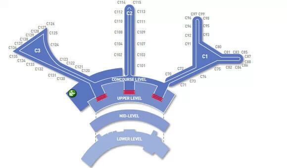 托运完之后,则上楼,到达蓝色的那一层 Level 2。大部分的Delta和西北航空都在Concourse A,如果有需要的话,可以乘坐机场内部小火车。