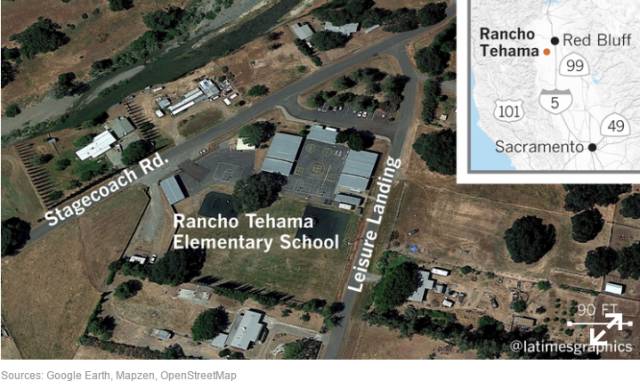 Rancho Tehama郡警官Phil Johnston告诉记者,枪击开始于当地时间早上8点,发生在一个距离加州首府萨克拉门托大约130英里的小镇。