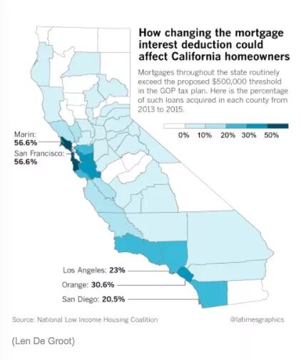 原本房贷利息抵税政策受惠最大的群体是购买大房子(房价贵),交纳很高房贷利息的的高收入家庭。华人就是这一群体的重要组成部分,在美华人主要聚集在旧金山湾区、洛杉矶、纽约等城市,多数地方买个小房子都是上百或几百万刀,税改方案规定,贷款超过50万刀不能享受税收减免,这对于高收入贷款买房的的华人家庭来说是一大重创!