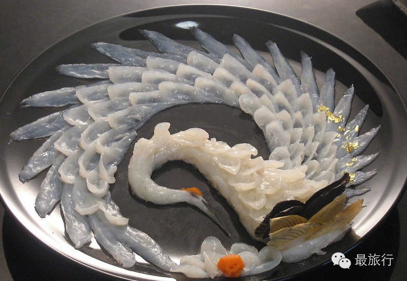 从中间开始一片一片的取出,不要破坏造型。卷上配料吃更是别有风味,但不要几片卷在一起吃,薄薄的生鱼片才能体现河豚的滋味。