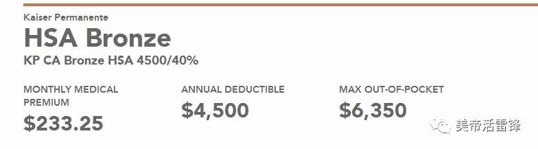 当然HMO的好处是你生病了就知道该找谁,而且通过与家庭医生建立良好的关系,也能对自己的身体状况有更好的掌握。所以Kaiser的HMO保险也有比较贵的: