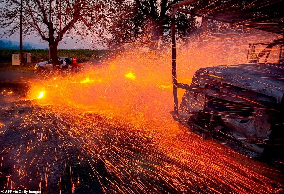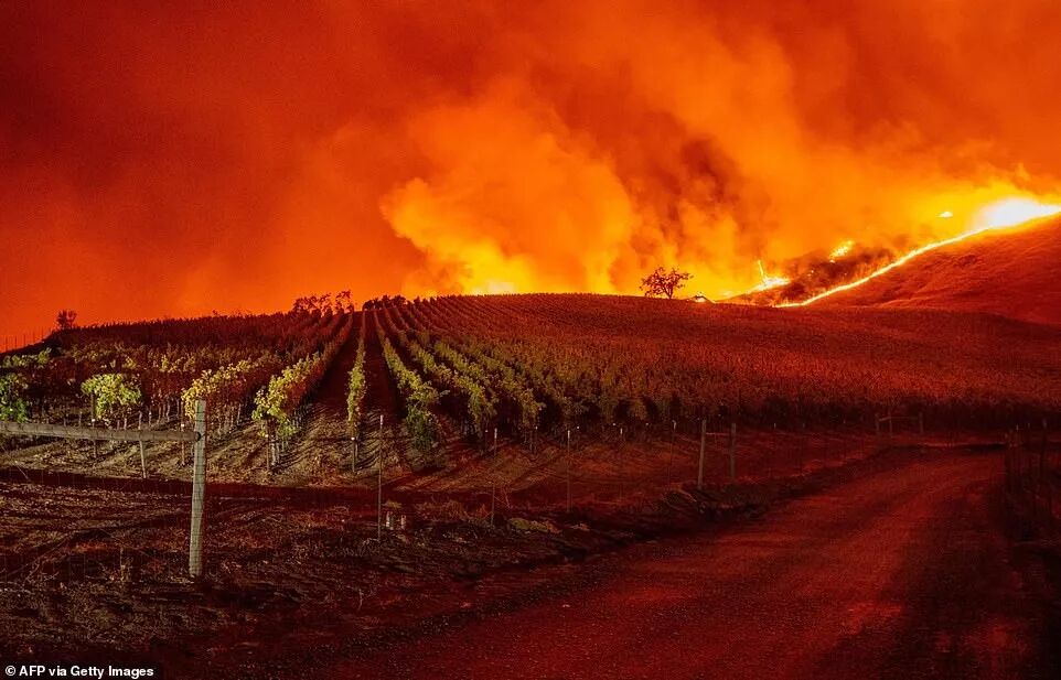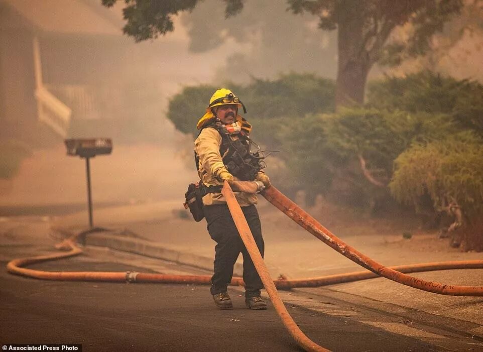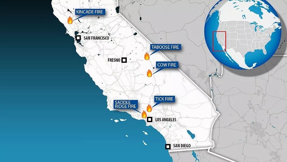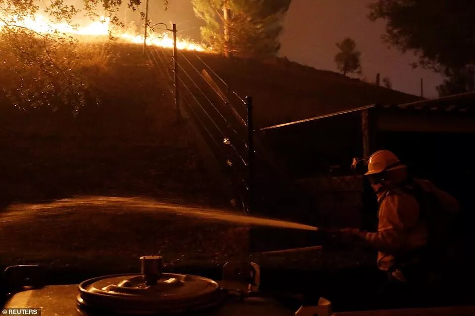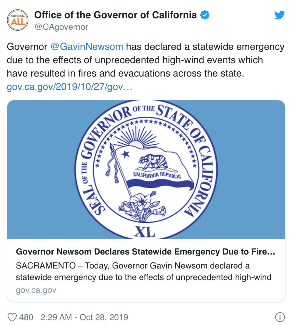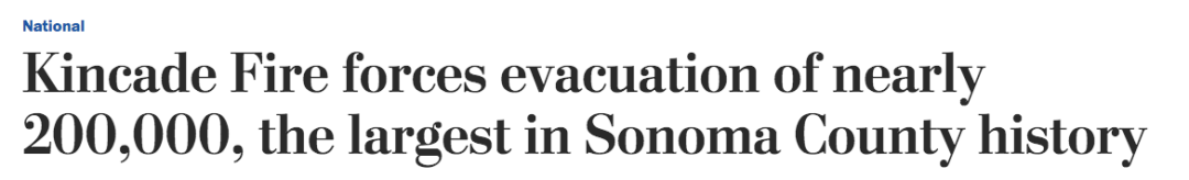 苏诺玛县此次撤离的居民是有史以来最多,超过18万居民被迫离开当地。由于大火逼近,101公路以东的温莎镇几乎被漫天烟灰吞没,消防车、救护车和警车不停在镇里警告居民马上撤离。当局也对纳巴县卡利斯托加(Calistoga)发出撤离警报,要求居民做好撤离准备。最强焚风来袭超30万户将断电南加州将再次出现干燥、炎热的焚风型态,国家气象局27日晚间再次发布红旗警告(red flag warnings)至28日,30日、31日更恐将出现本季迄今为止最强劲的圣塔安那焚风。加州州长纽森表示,未来72小时,加州将遭受严峻考验。