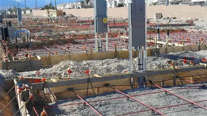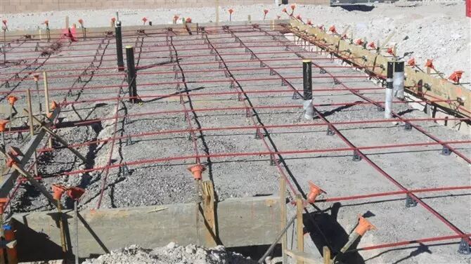 2,然后上面铺上水泥,整栋房子是用螺丝钉固定在水泥地板上的。