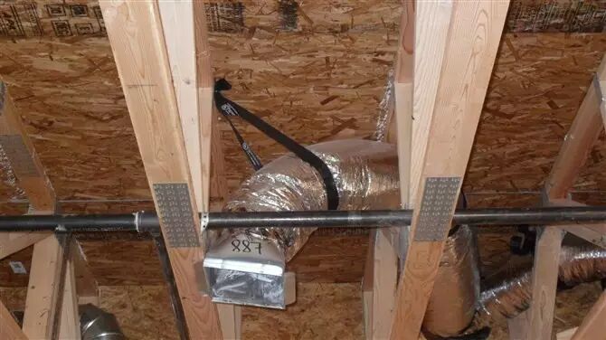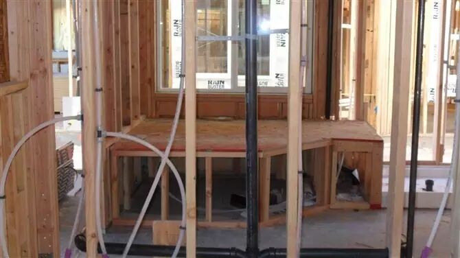 下水道和电线管道就固定在墙壁里面。顶棚和墙壁的空间会用石棉填充,以便隔热和保温。