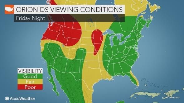 据Accuweather消息,北美东部地区,这次非常适合欣赏猎户座流星雨!而美西地区,由于不断的山火,影响了能见度,可能不得不留下遗憾了!