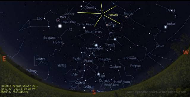 喜大普奔地是,因为10月20日左右是上弦月,只要月朗天明,在没有光污染的夜空下,南北半球都能看到哦!不同于月食日食,观看猎户座流星雨,不需要额外设备,一双慧眼即可!