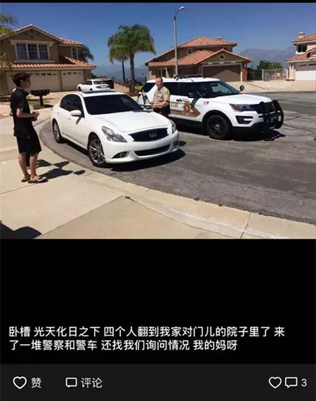 住在对门的也是华人,他发朋友圈表示:警察还到他家询问情况。