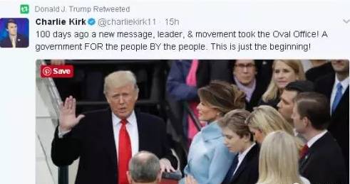 这也要澄清一下,人家特朗普几个小时前还转发别人的推文呢: