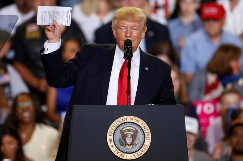 特朗普现身宾州州府所在地哈里斯堡的农场展览中心,出席“让美国再次伟大”的集会。