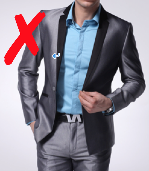Shoulder:西装上衣的肩部接线点应该与自己的肩部一致。常见的错误就是,肩部过大,使人看起来肩部下垂,非常不精神。