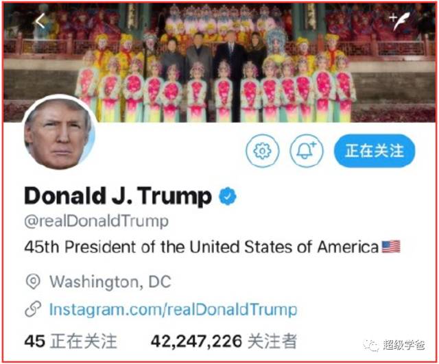 因为我们发现,特朗普是个商人,比较务实,喜欢金碧辉煌,看见故宫眼睛就直了,当天就发了好几推,还把推特的背景改成了在故宫的合影。