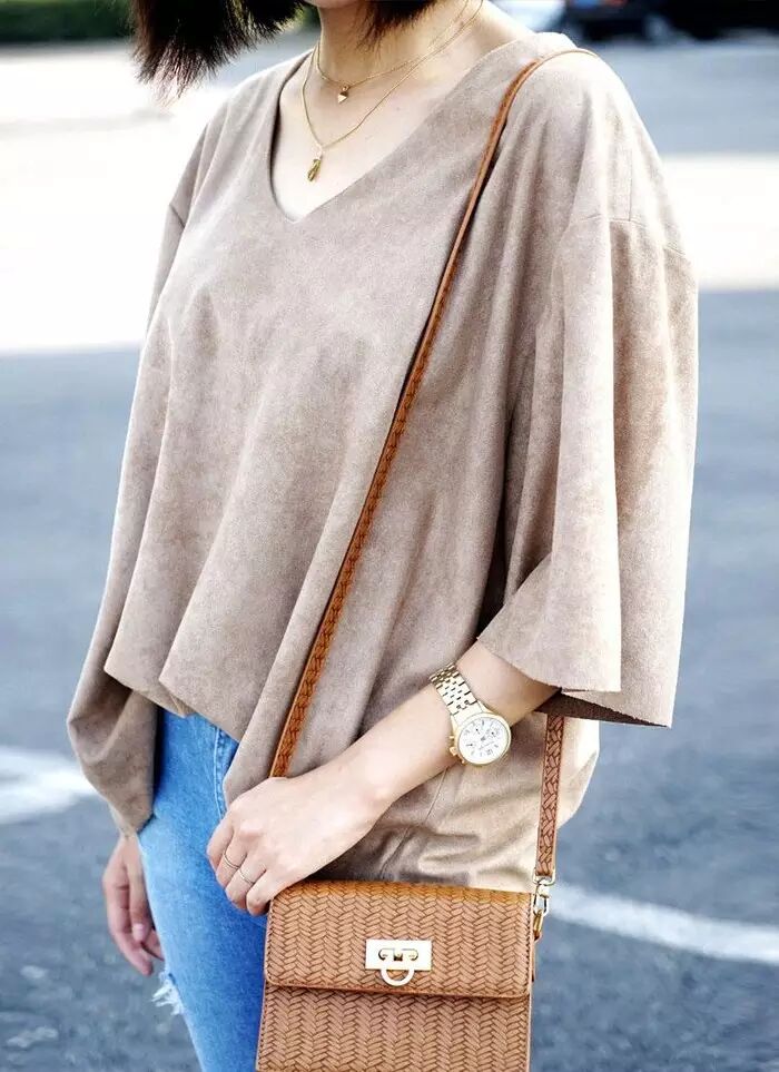 让女生超级喜欢的蝙蝠袖,有纤瘦手臂的效果,赘肉都隐藏得很好哦,V领蝙蝠袖上衣、七分袖都穿出你的淑女气质之外同时成功地将你的粗手臂遮盖。