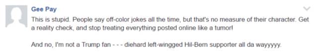 “这事处理得很愚蠢,很多人都在网上说这些带颜色的玩笑啊!这不代表他们本人的性格!