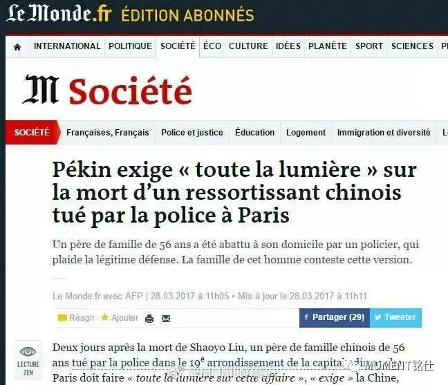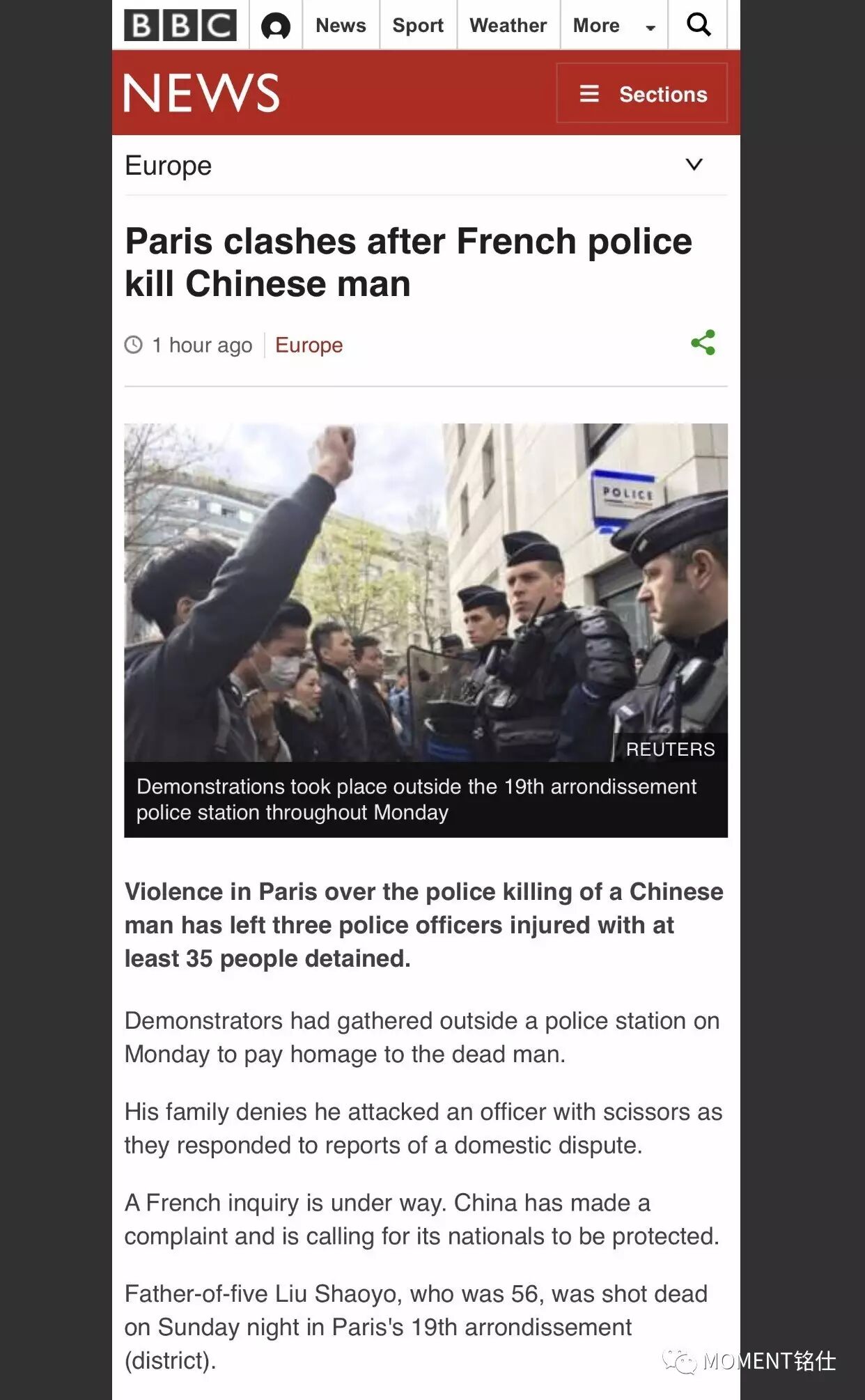 今早媒体大的头条就是:华人遭警察射杀,巴黎华人与警察起冲突。