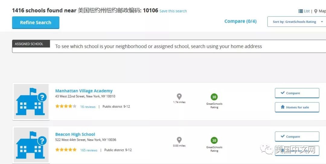 想知道自己到底被划在哪个学区?被指定了哪些学校?登陆greatschools官方网站,或者登陆zillow这样的卖房网站。