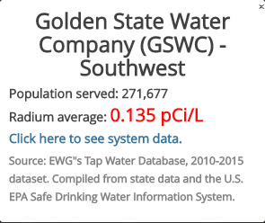 虽然5万个公共水系统中,只有158个超过联邦环保署(EPA)在1976年制定的镭法定限值,但几乎所有公共水系统都超过加州科学家在2006年制定的两个单独镭同位素公卫标准,因为加州的标准比联邦环保署严格数百倍。