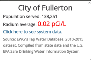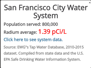 镭是自然界存在的物质,是当铀和釷在环境中分解后所形成的产物,在自然界存在的两种主要同位素是镭226及镭228。加州镭安全含量是:镭-226为每公升0.05微微升,镭-228为每公升0.019微微升。根据这个标准来看一下EWG的报告就会发现,德州、加州、纽约州、新泽西州等地严重超标,而放大了看,严重超标的城市包括洛杉矶、旧金山、纽约市、休斯顿市等。