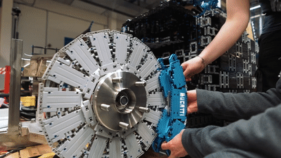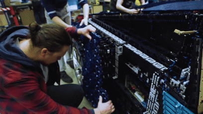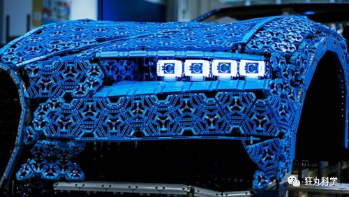 当然,这次1:1乐高布加迪给人感觉最震撼的还是靠自己的力量载人移动,虽然距离真正的420km/h相差甚远,但积木配件还是能够将这辆重达1.5吨的跑车推送至20km/h的速度。而关键点则是2304个电击组成的「发动机」矩阵: