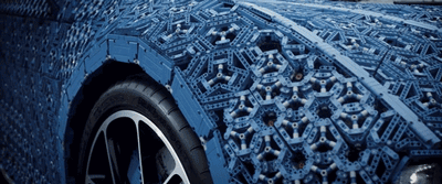 不过对建筑团队来说,最大的挑战是乐高跑车的「皮肤」。原型车使用了很多雕塑美学以及曲面设计,但关键问题来了,乐高是直的,它不能在这时候变弯。
