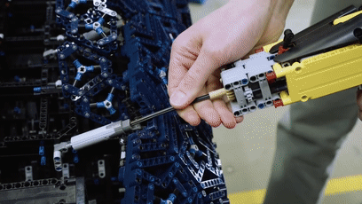 偶尔也会用一些小工具辅助拼装,不过,这些工具也都是用乐高积木拼出来的。