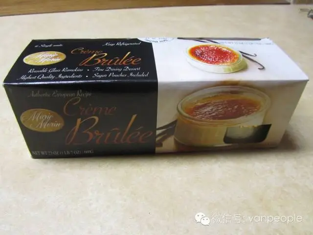 很好吃的Creme Brulee,撒上包装袋里的糖就能吃了,还可以放进烤箱烤一会儿或者~~买个喷火枪牛逼一下!就是焦糖布蕾啦!吃完后留下的玻璃碗可以留着派用处。