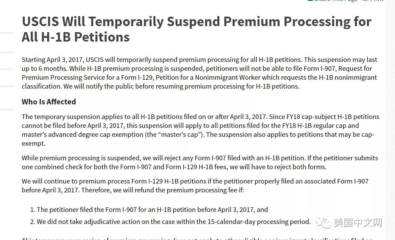国公民与移民服务局(USCIS)表示,今年的H1B申请收件已于今天(4月3日)起正式开放,所有申请人从今天起将停止加急申请的处理,暂停期拟定为6个月。