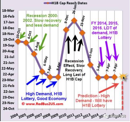 每年财年是4月1日,今年4月3日是星期一,所以今天是今年第一天提交H1B申请的日子,如果移民局在前5个工作日收到超过65,000的申请名额话,那么移民局将从第6个工作日起,不再接受后递交的申请,并从前5个工作日中已收到的申请里,随机抽取案件进行审理,也就是传说中的H1B抽签。